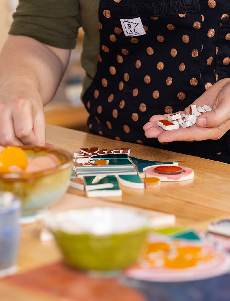 Over the past 20+ years, Mercedes has dedicated herself to learning, making, designing, living and creating all things tile. When she realized she needed to make her own handmade tile while funding her art, she founded Mercury Mosaics, producing renowned artisan tile. Mosaic Candy Shop is her latest endeavor, the culmination of a lifelong obsession with tile.